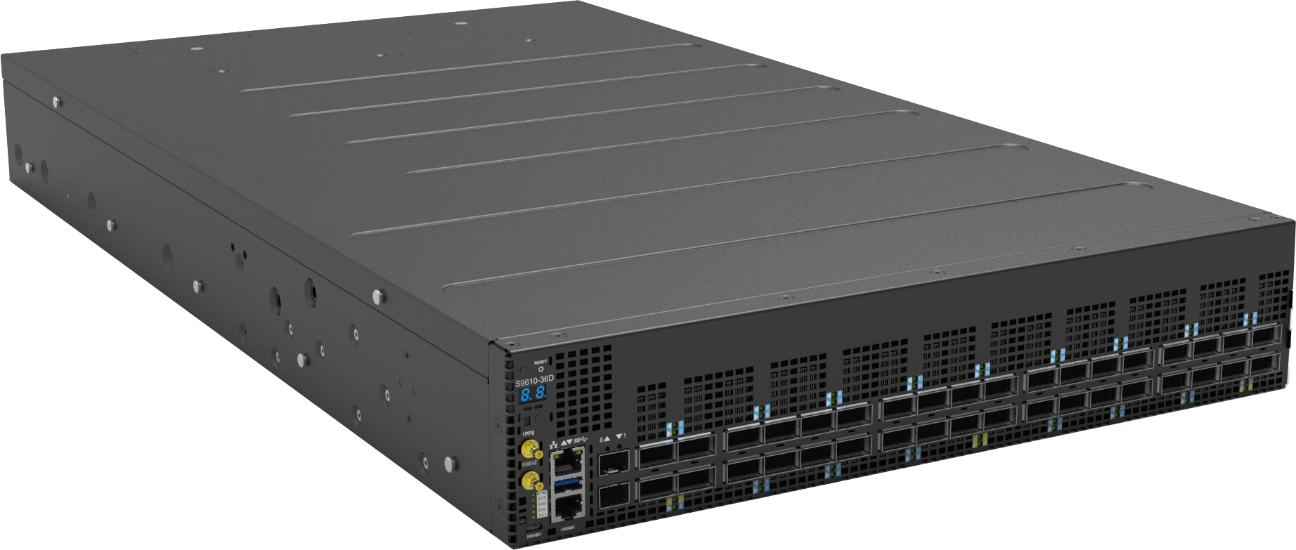 Multi-function Aggregation Router Supports SyncE and IEEE 1588 Support full segment routing over IPv6 (SRv6) 36 x 40/100/200/400G QSFP-DD ports supporting 400G ZR/ZR+ 2 x 10G SFP+ management ports 1 x RJ45 serial console port 1 x Micro USB console port 1 x 100/1000M RJ45 management port 1 x USB 3.0 Type-A port 1PPS and 10MHz timing ports